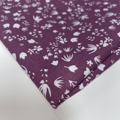 Retalho 43x150cm - Tecido de algodão - Bosque Encantado - Folhinhas violeta
