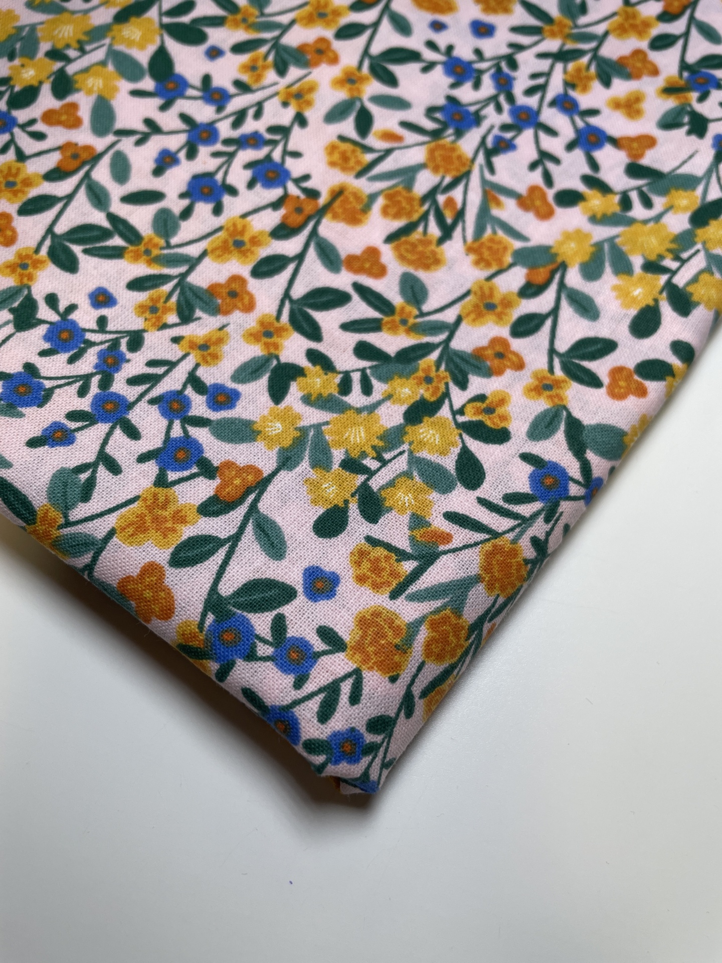 Retalho 44x150cm - Tecido de Algodão - Flores do campo fundo rosa