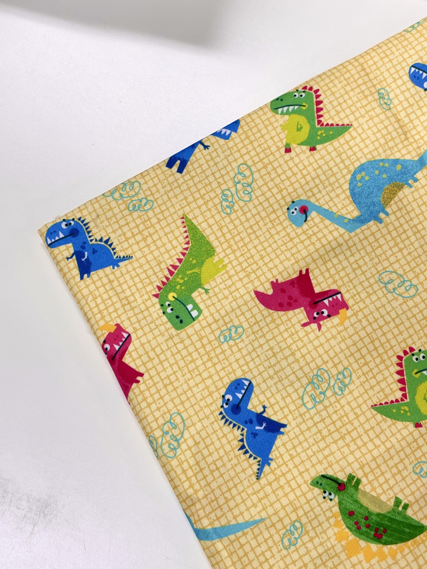 Retalho 45x110cm - Tecido de Algodão - Dino Friends - Fundo amarelo