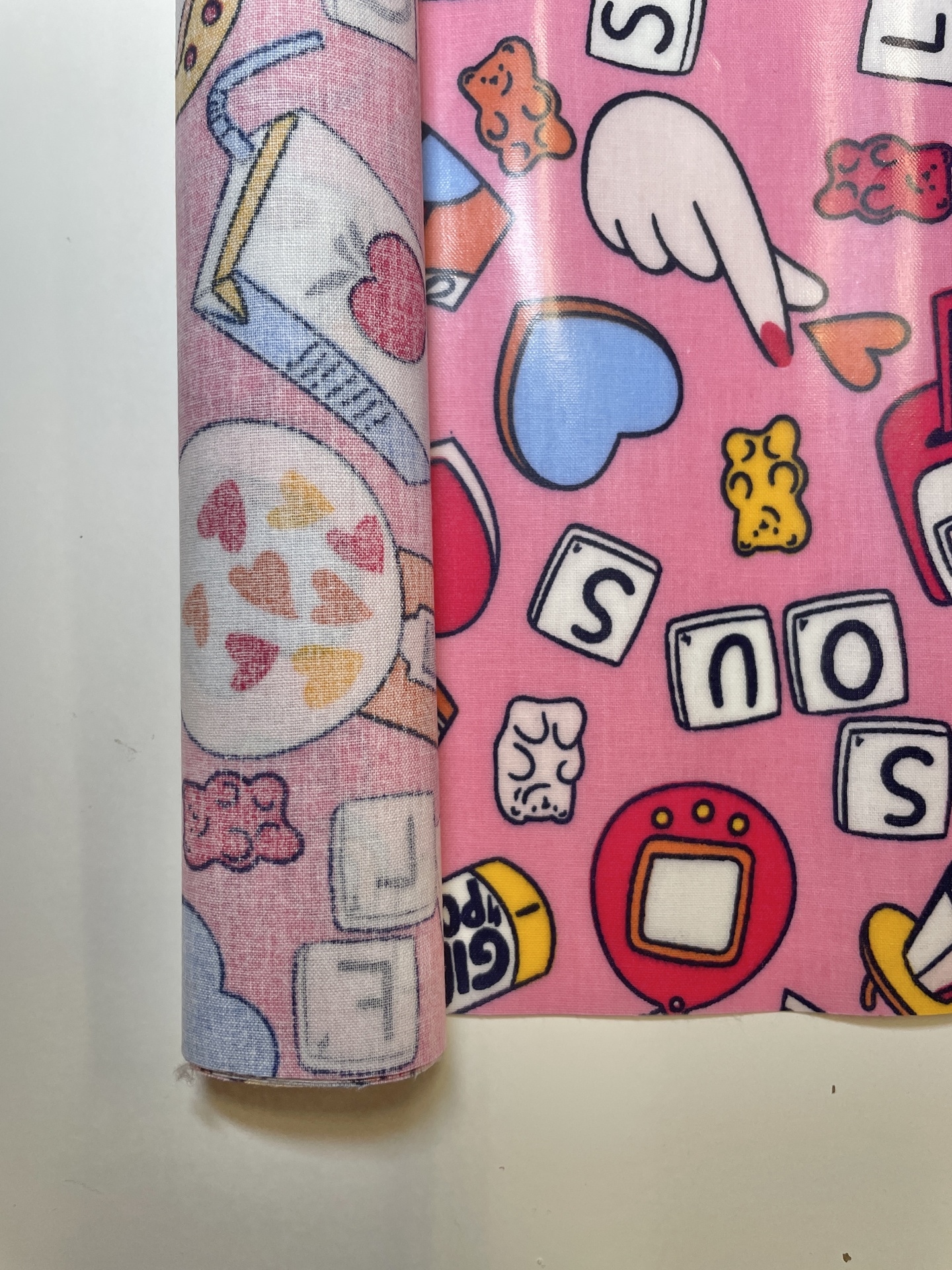 Retalho 45x140cm - TECIDO PLASTIFICADO - KAWAII - FUNDO ROSA