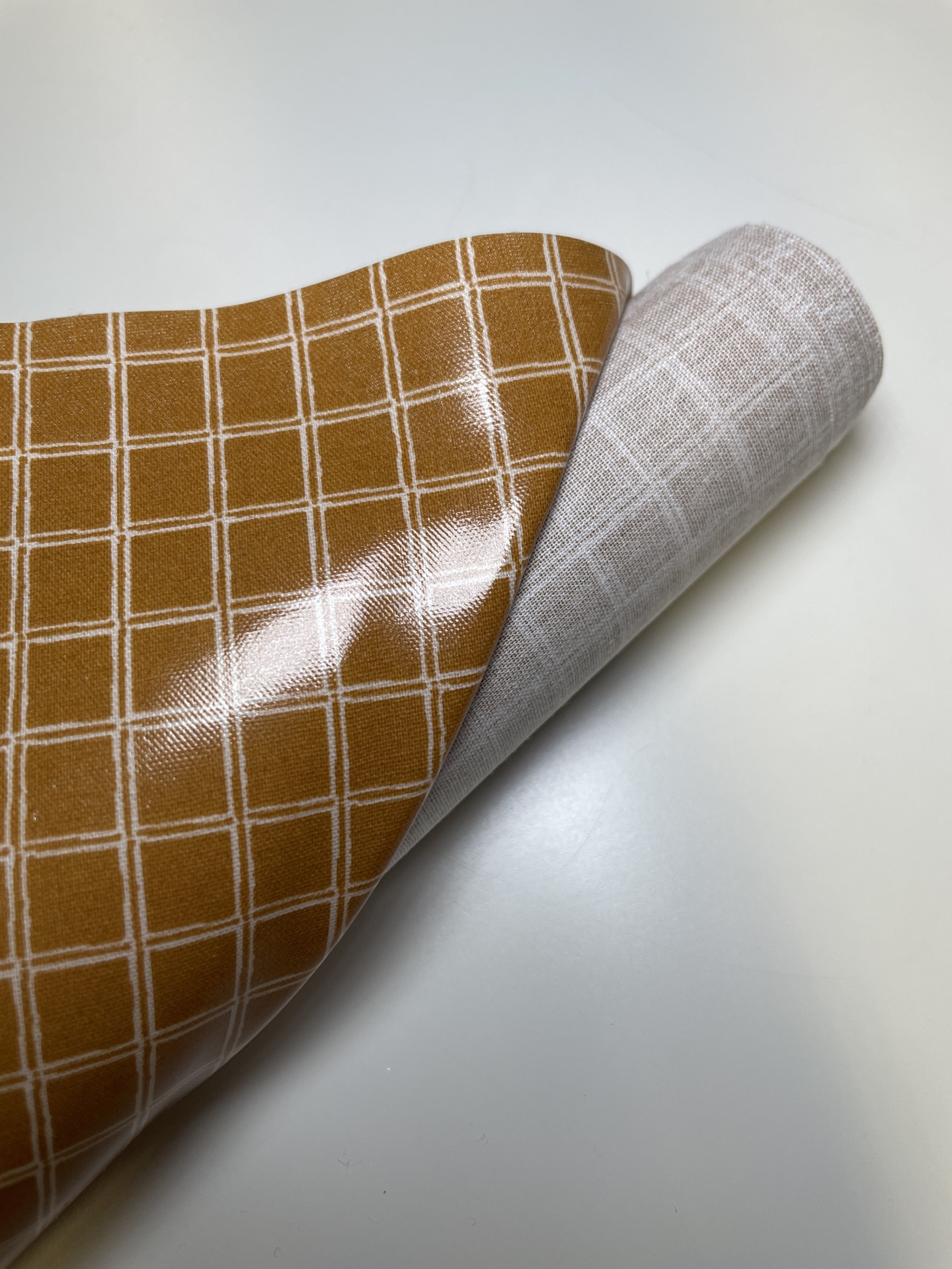 Retalho 50x140cm - Tecido Plastificado - Quadriculado castanho caramelo