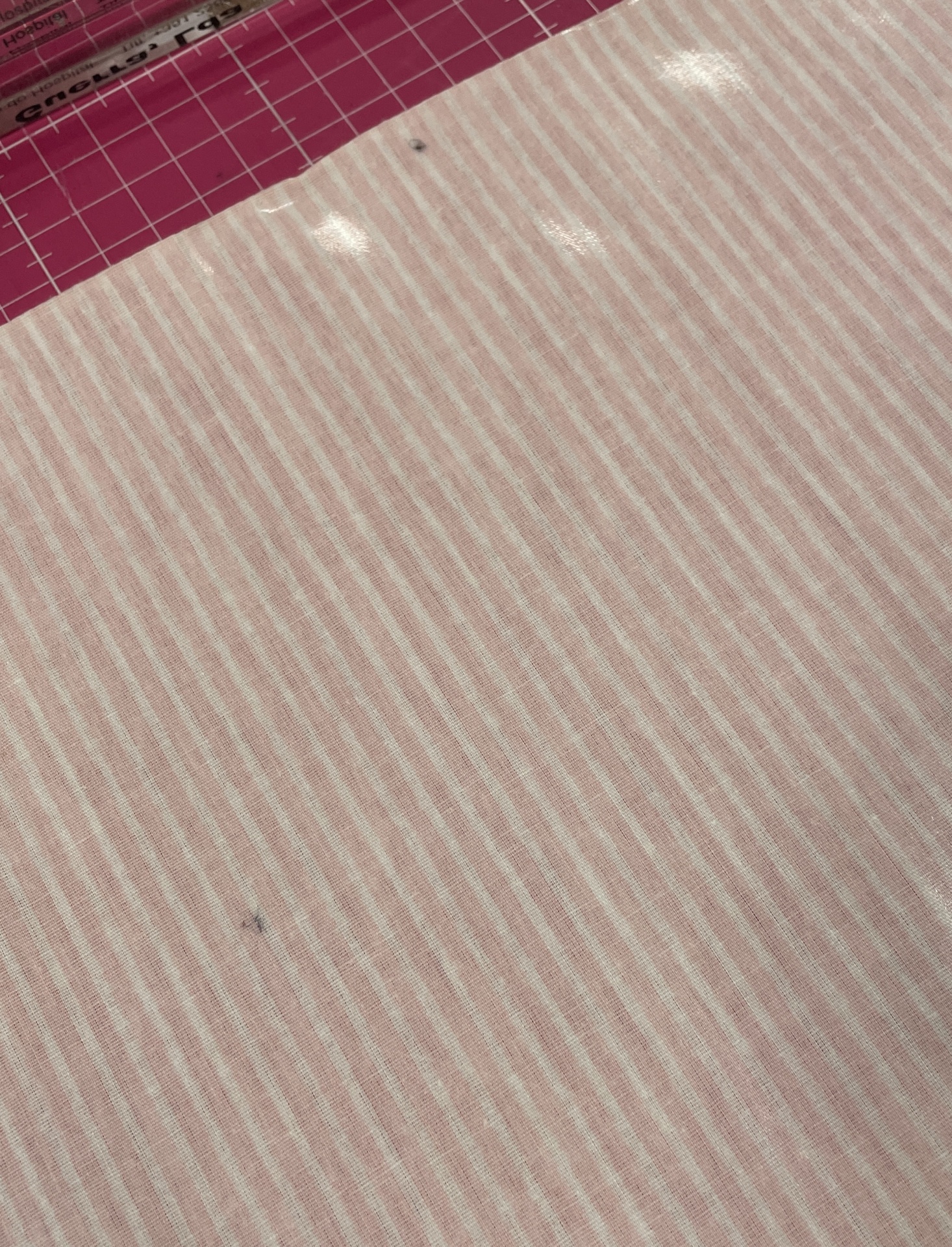 Retalho 65x140cm - TECIDO PLASTIFICADO - RISCAS ROSA CLARO - Com Defeito