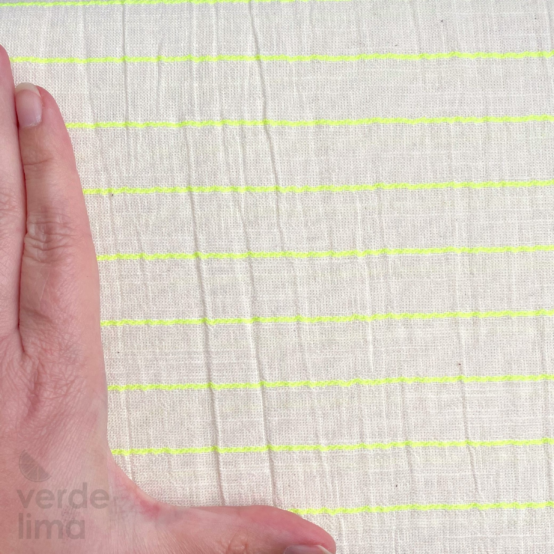 Tecido de aspecto natural com efeito levemente enrugado. Perfeito para vestidos, lenços e roupa fresca.