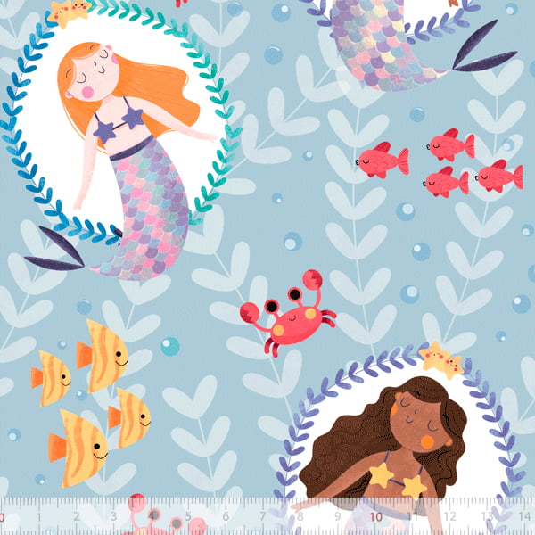 Tecido de Algodão - Sereias - Guirlanda