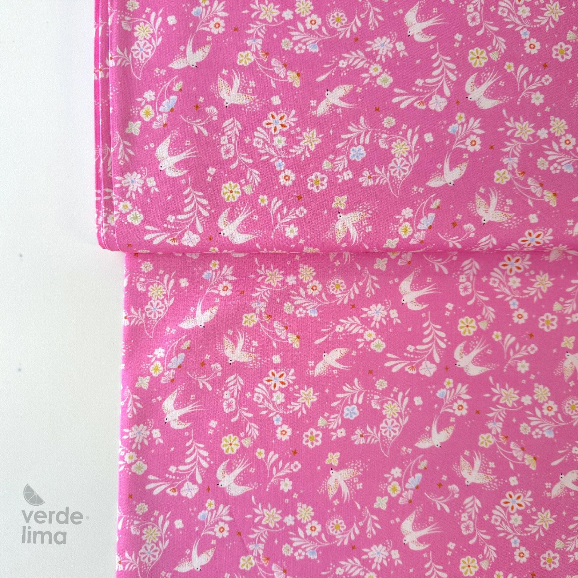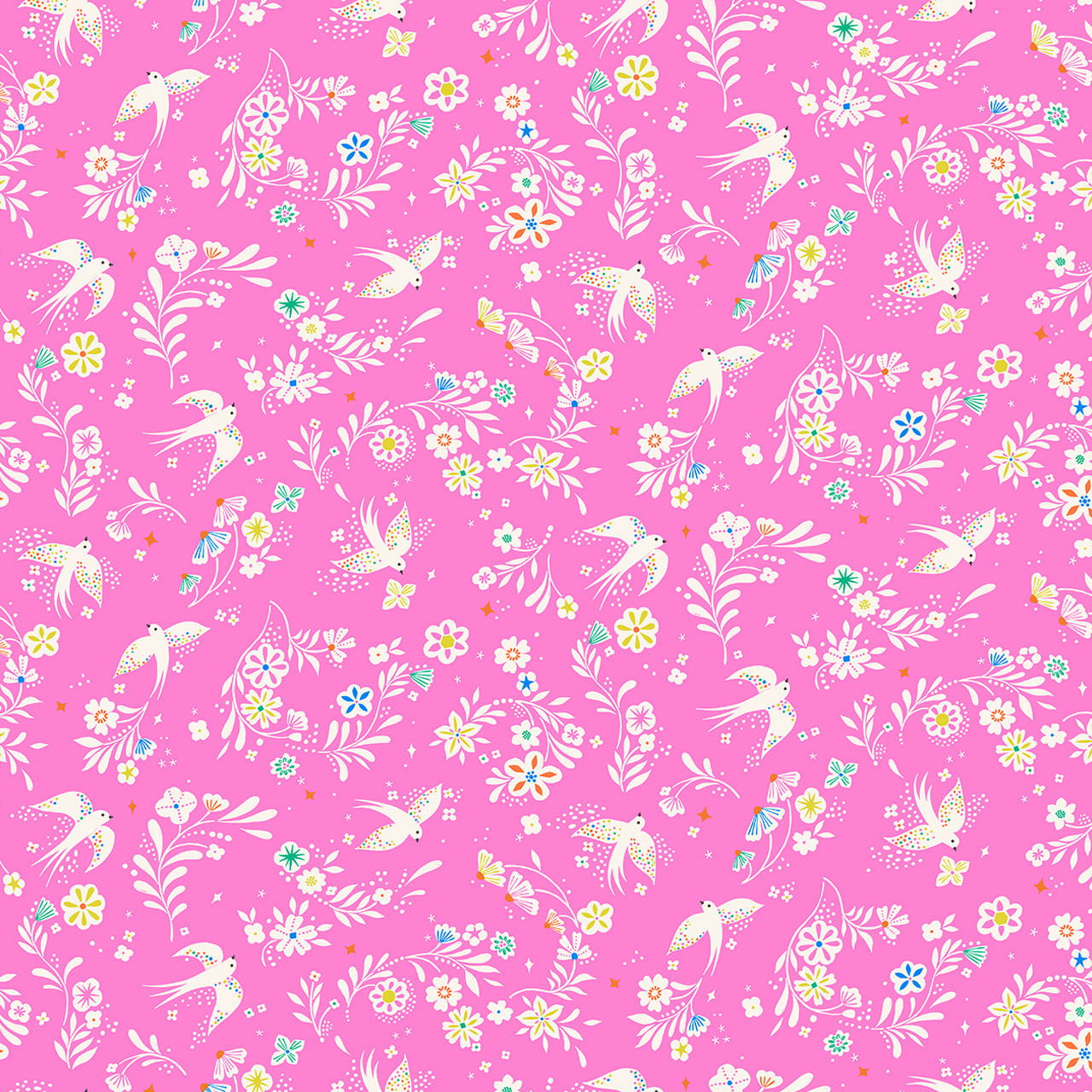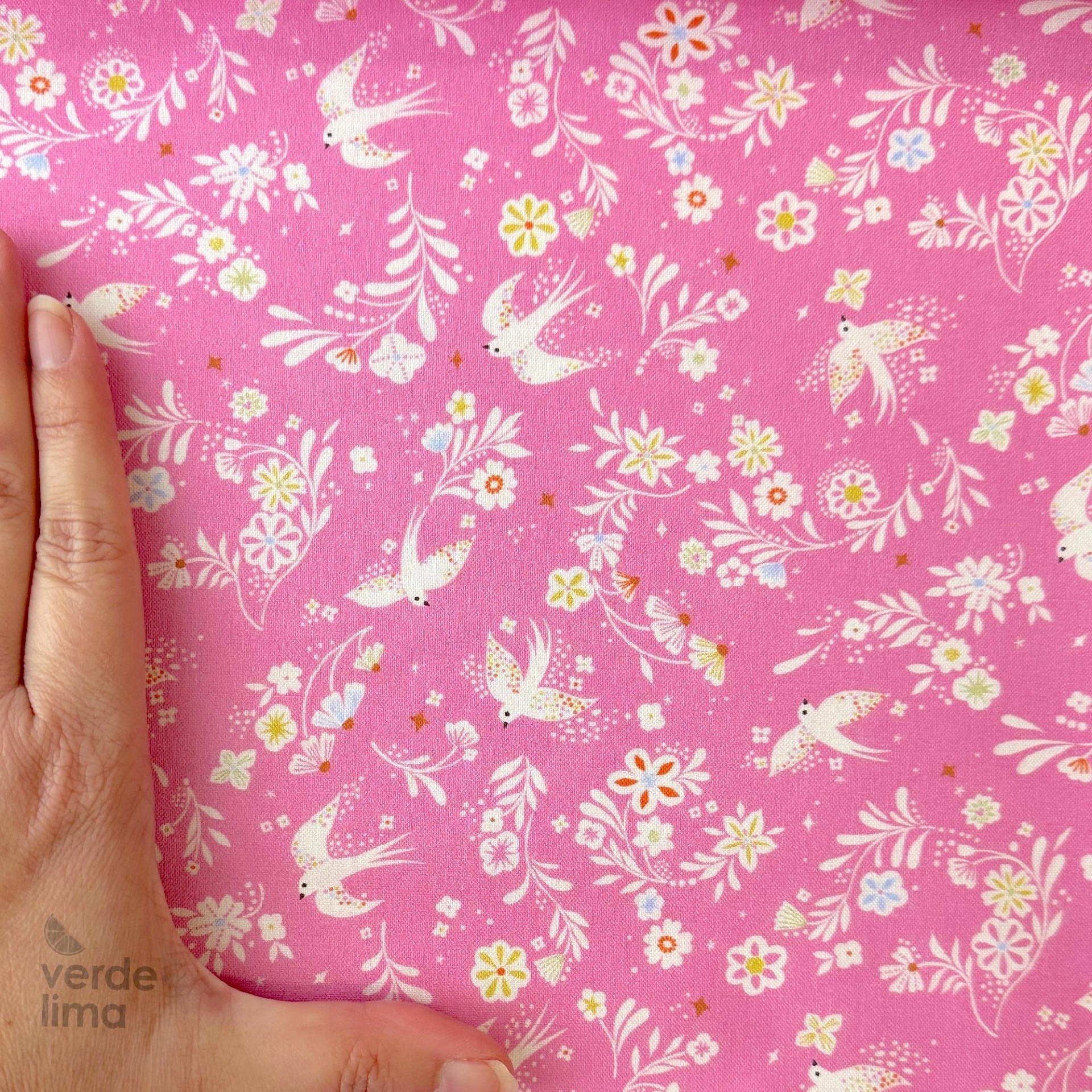 Tecido de Algodão - Songbird - Andorinhas fundo rosa