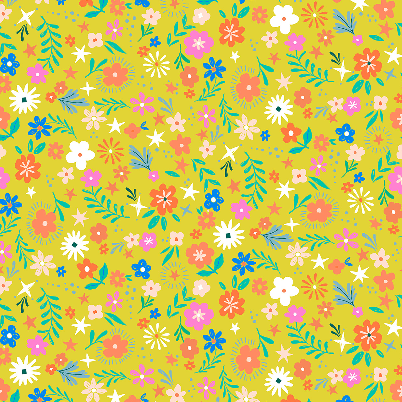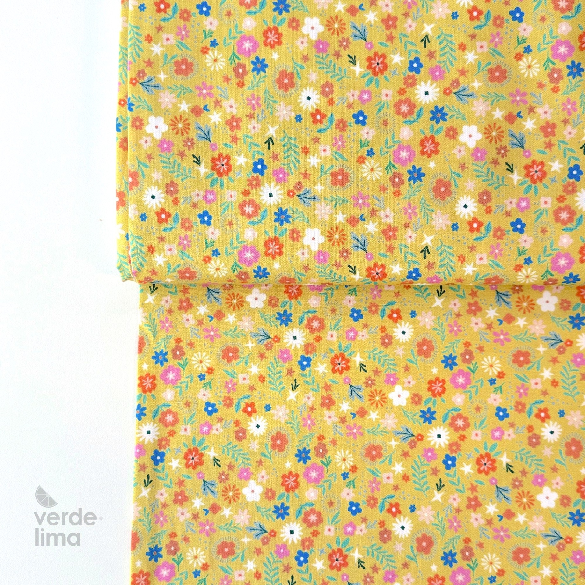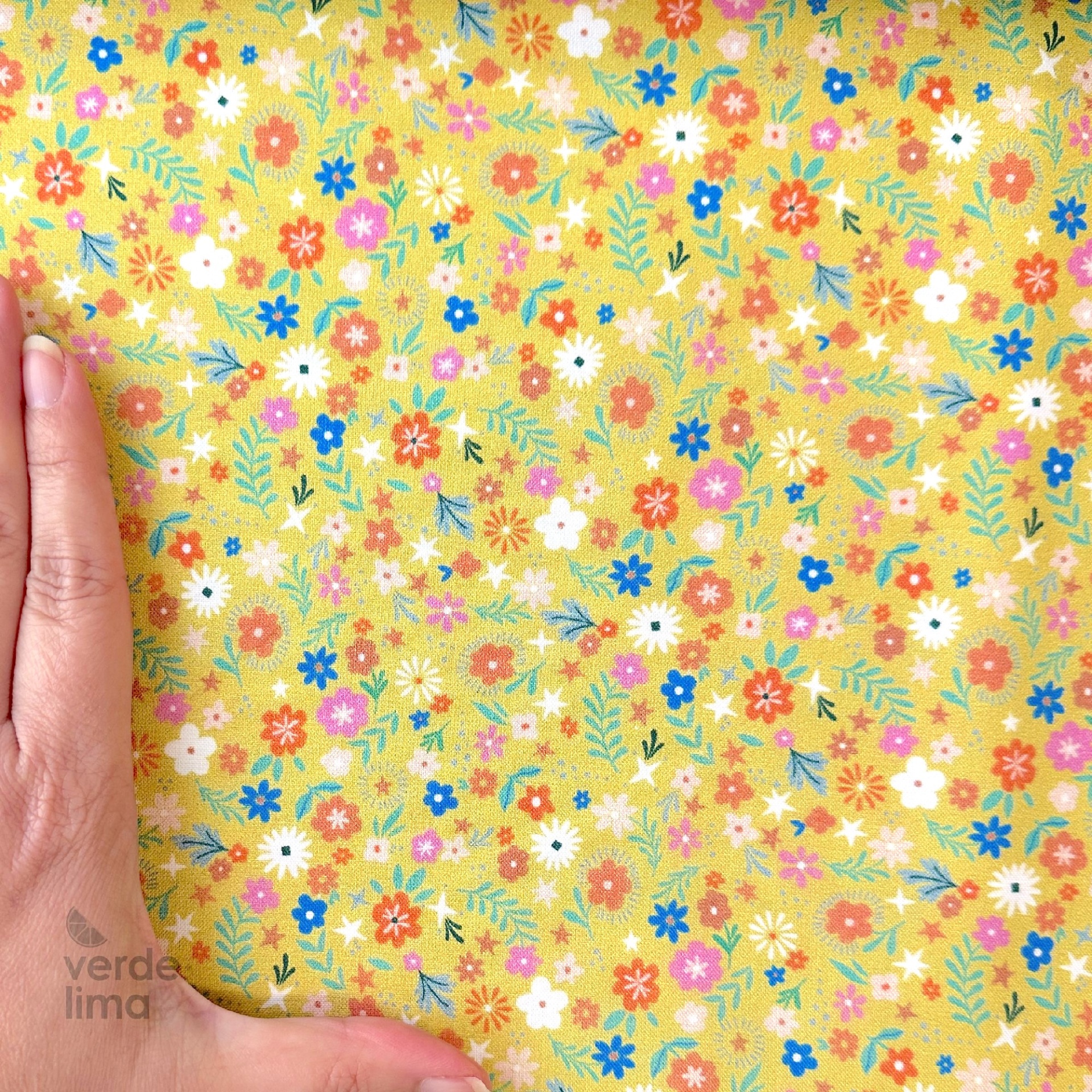Tecido de Algodão - Songbird - Flores fundo amarelo