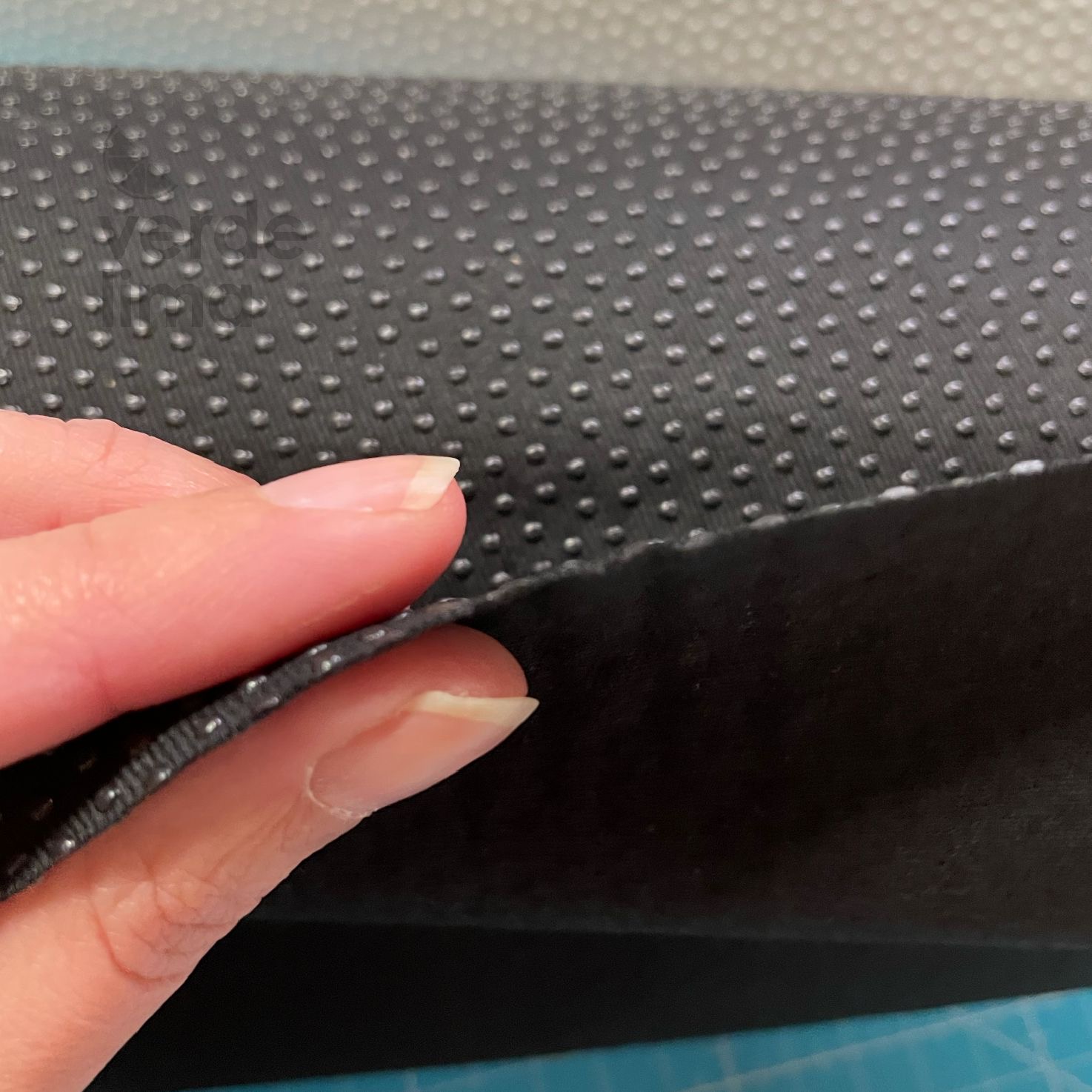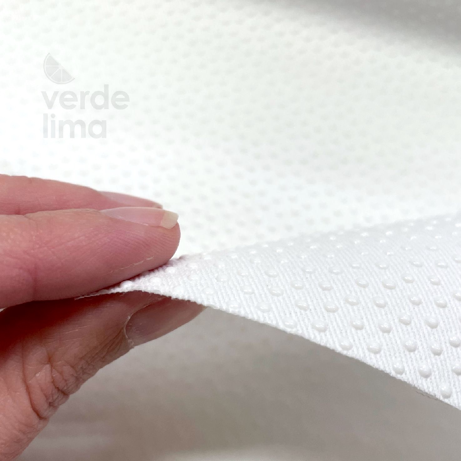 Consiste numa base de tecido de sarja com gotinhas de silicone que evitam que escorregue.