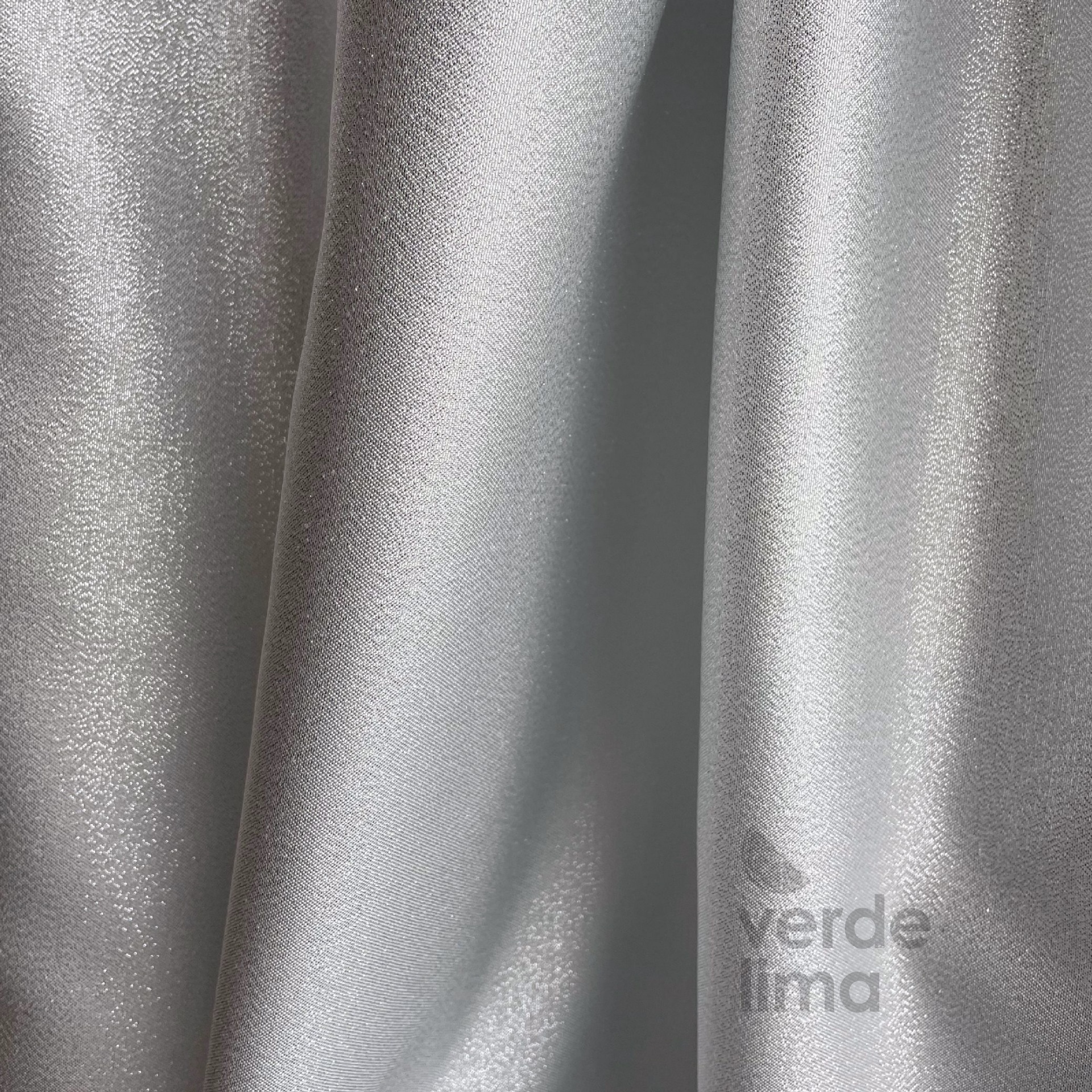 Tecido poliéster com fios prateados, adequado para decorações de Natal.