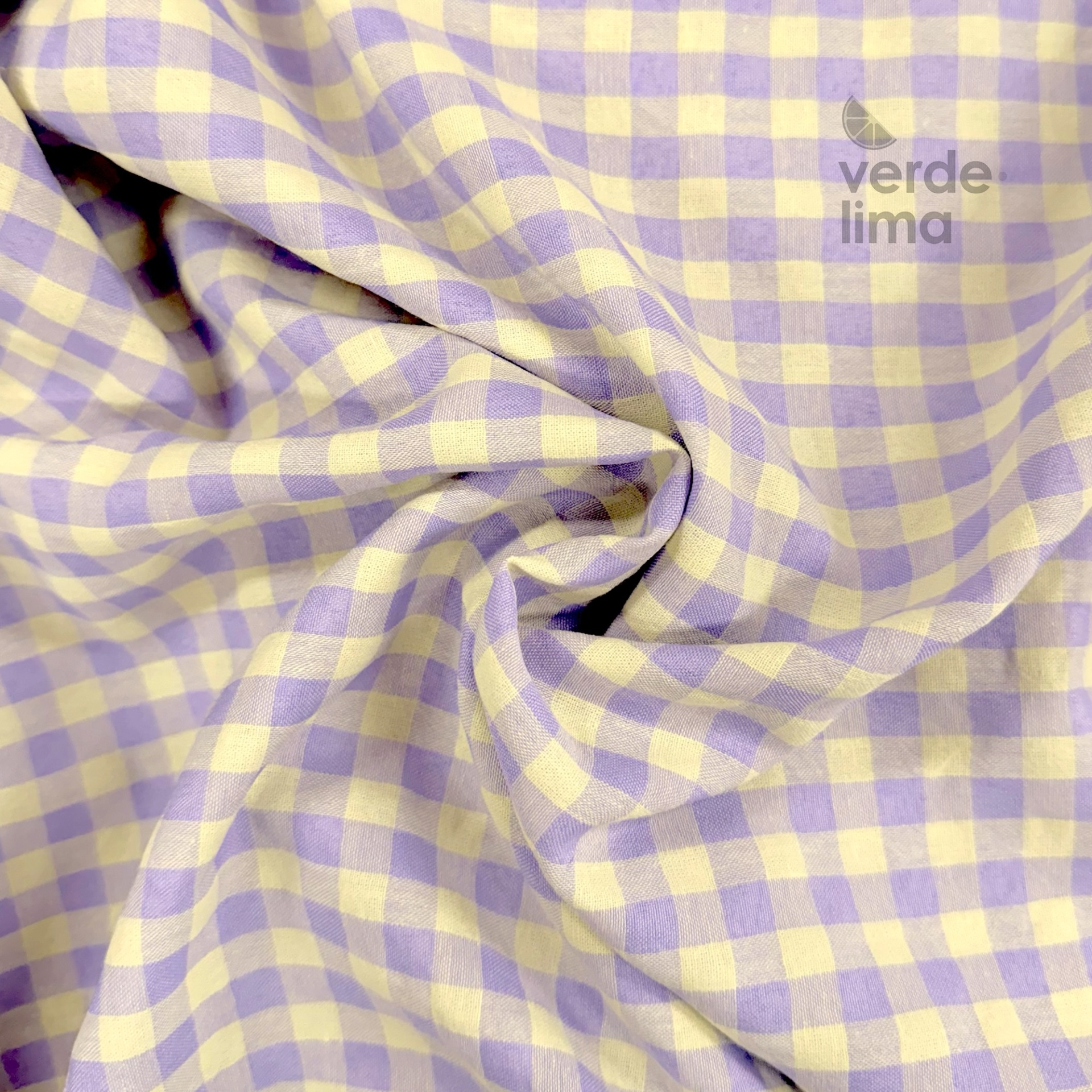 Tecido Vichy - Gingham Little Lilás e Amarelo