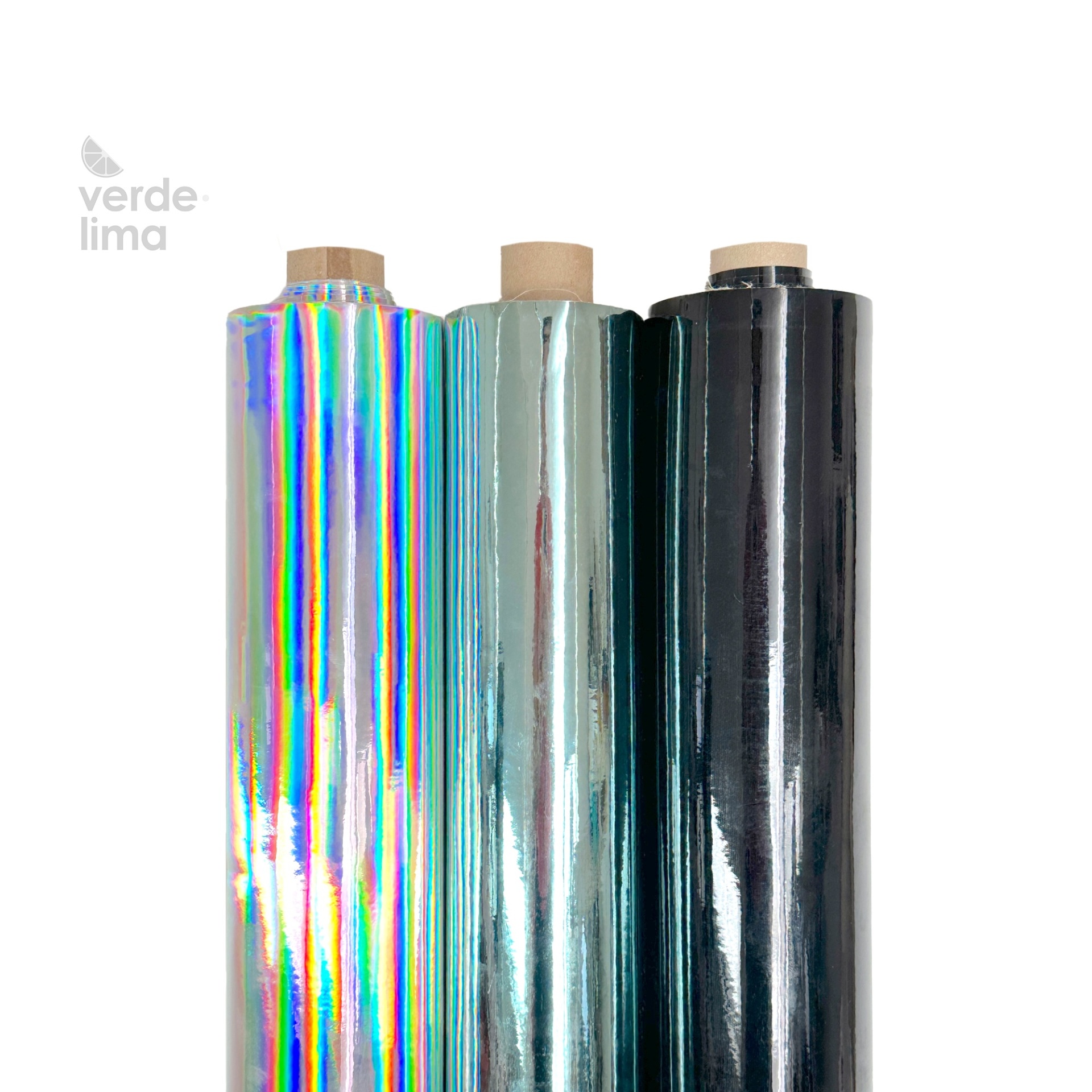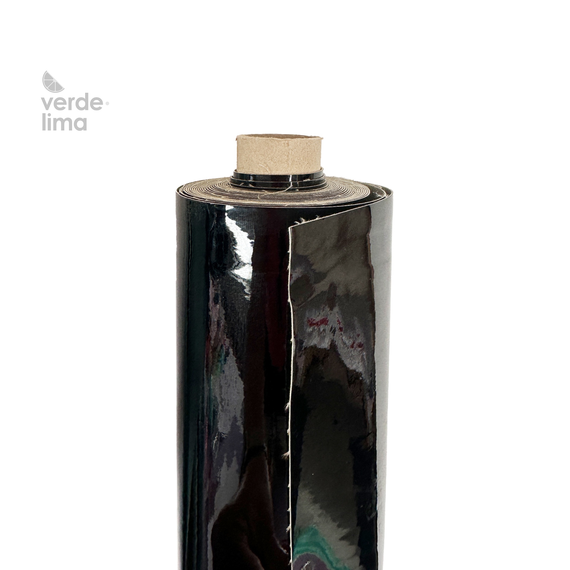 O tecido laminado de TPU com um impressionante efeito de espelho está disponível em 2 cores iridescentes e em preto envernizado.